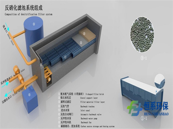 反硝化深床滤池将反硝化与深床过滤功能有机结合在一起,是集生物脱氮及过滤功能合二为一的处理单元。 设置在二沉池出水之后,可与其它处理单元完满结合,具有脱氮、除磷、去除悬浮物等多种功能。反硝化深床滤池特别适用于市政污水厂的提标改造,例如:从1级B标准向1级A标准的提升,从1级A标准至地表Ⅳ类水的提升。 反消化深床滤池在有超过45年的运行使用时间,此系统能够同时去除TN(NO3-N)、SS和TP,反硝化滤池滤料也从普通的鹅卵石、砾石等转变为陶粒、无烟煤、火山石以及高分子惰性载体这类比表面积大,截污能力强的载体材料。上流滤池冲洗方向和进水水流方向是同向的,因此在滤池的出水区常常会有一个冲洗废水收集池/槽,冲洗完的废水回流至进水配水区。